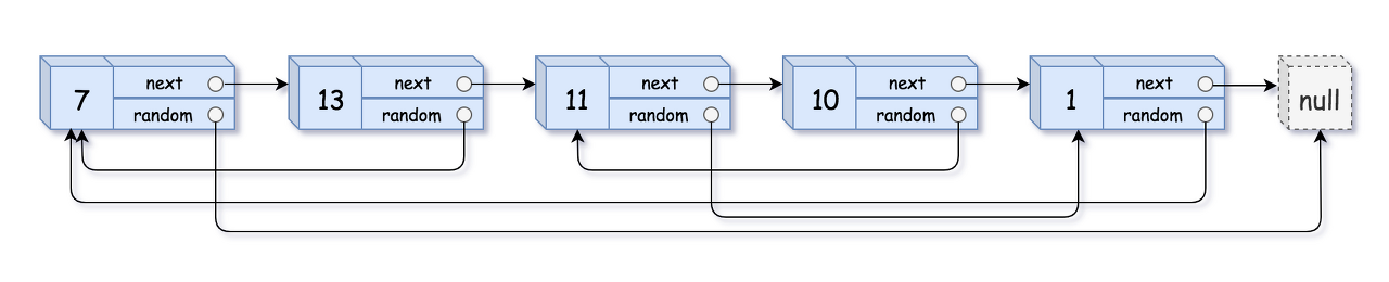 Input: head = [[7,null],[13,0],[11,4],[10,2],[1,0]] Output: [[7,null],[13,0],[11,4],[10,2],[1,0]]