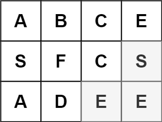 Input: board = [["A","B","C","E"],["S","F","C","S"],["A","D","E","E"]], word = "SEE" Output: true