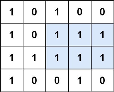 Input: matrix = [["1","0","1","0","0"],["1","0","1","1","1"],["1","1","1","1","1"],["1","0","0","1","0"]] Output: 6