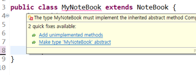 추상 클래스를 상속받은 하위 클래스에서 추상 메서드를 구현하지 않으면 에러가 발생한다.