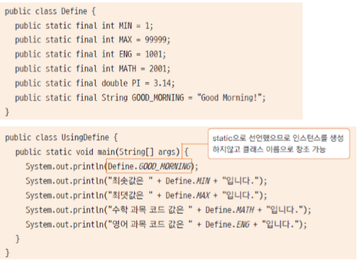 따라서 public static final을 만들면 c의 define과 유사한 역할을 하게 할 수 있다.