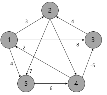 1. 음의 가중치를 가진 간선 사용가능 (다익스트라는 음의 가중치 간선 불가)
